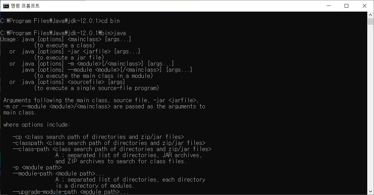 C:\Program Files\Java\jdk-12.0.1\bin로