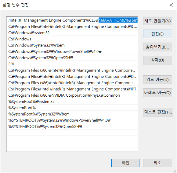 'java'은(는) 내부 또는 외부 명령, 실행할 수 있는 프로그램, 또는