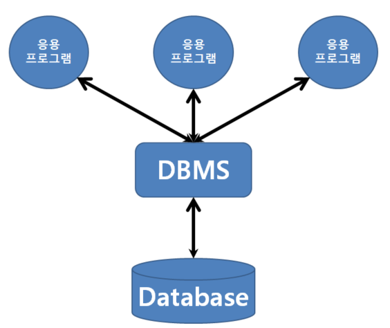 데이터베이스를 직접 응용 프로그램들이 조작하는 것이 아니라 데이터베이스를 조작하는 별도의 소프트웨어가 있는데 이를 데이터베이스 관리 시스템(DBMS : DataBase Management System)이라 한다. 즉 데이터베이스 관리 시스템이란 데이터베이스를 관리하며 응용 프로그램들이 데이터베이스를 공유하며 사용할 수 있는 환경을 제공하는 소프트웨어다.