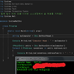 [이 포스팅은 시작하세요! C# 7.1 프로그래밍의 내용을 발췌하였습니다] [보기용 예제 소스 코드에서 오류 발생시에 댓글이나 방명록에 글을 남겨 주시면 수정/보완하겠습니다] 이번에는 C#으로 네트워크 통신하는 방법 중에 첫 번째로 가장 기본적인 내 컴퓨터의 IP주소를 읽어와 출력하는 프로그램을 작성해 보겠습니다 먼저 사진으로 보고 난 뒤 설명을 이어가도록 하겠습니다 간단한 예제이기 때문에 소스 코드가 그리 길지 않아서 설명은 간단히 하겠습니다 일단 처음보실 코드는 7번 줄입니다 프로그램을 디버깅하기 전에 System안에 Net이라는 함수들을 가져와 미리 사용하기전에 준비하는 정도로 생각하시면 될 것같습니다 저 아이가 재료를 가져와준 덕분에 15번과 19번 코드 줄에 있는 Dns와 IPHostEntry ..